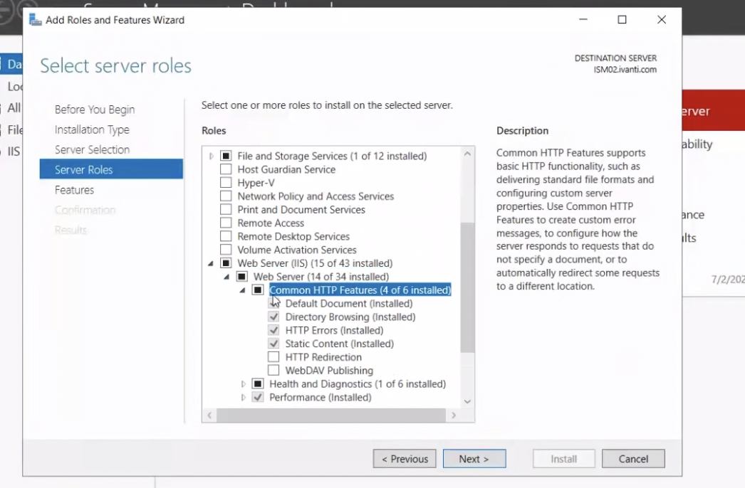 Ivanti Service & Asset Manager Prerequisite (ön gereksinimler) kurulmalı: